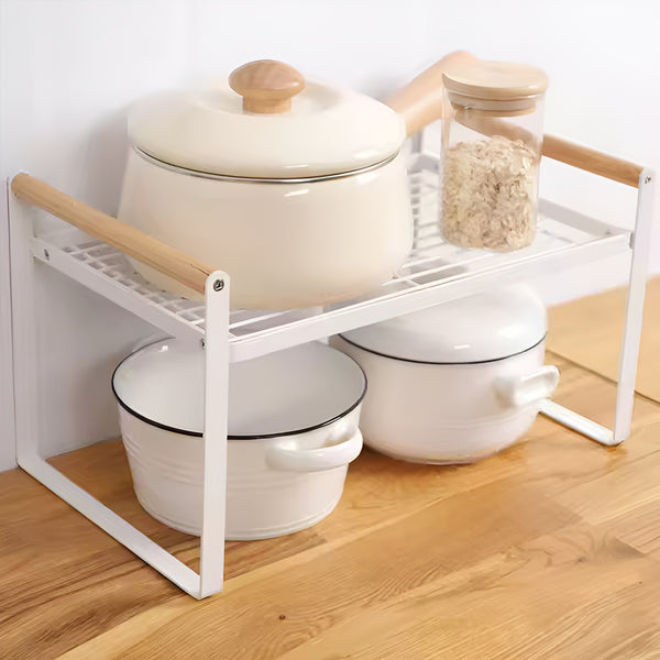 - Material: Made from high-quality metal, this storage rack offers exceptional strength and stability. The robust metallic frame can handle heavy items, while the wooden handles provide a stylish yet practical touch. This combination ensures that the organizer will last for years, even with daily use.