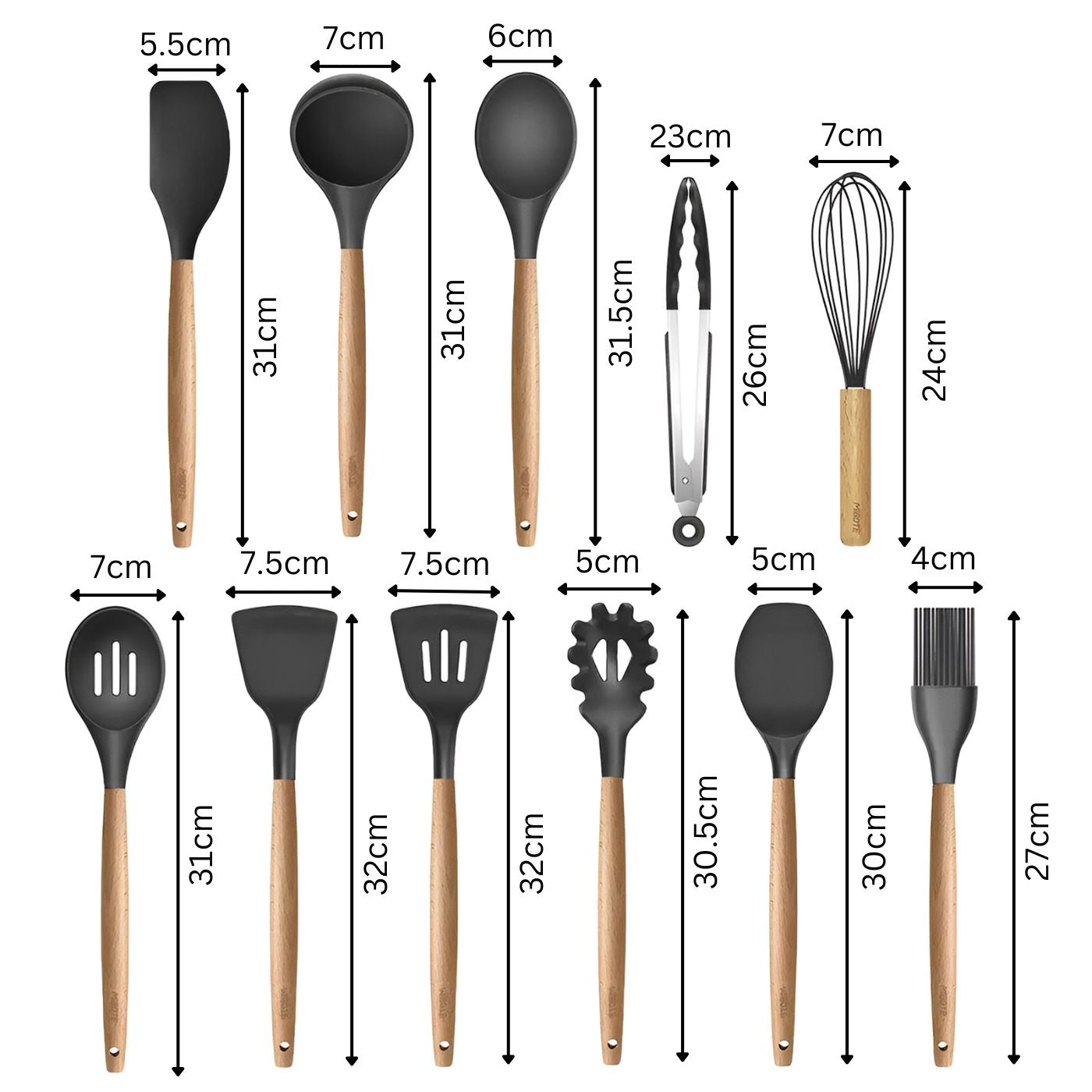 - 11-Piece Complete Cooking Set – Includes all essential kitchen tools like spoons, spatulas, tongs, whisk & more for effortless cooking, baking, frying, mixing & serving.
