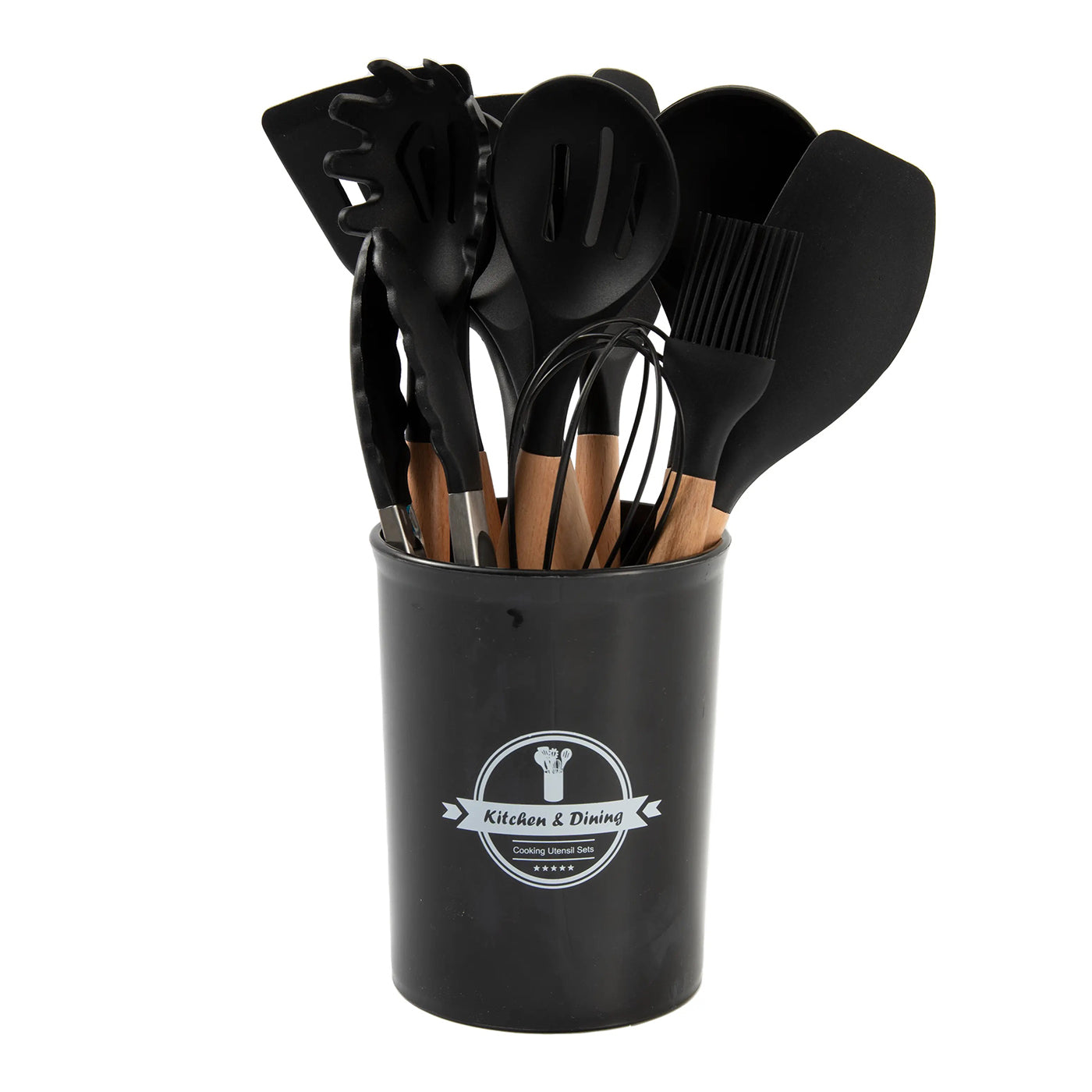 Upgrade your kitchen with the DecorTwist 11-Piece Silicone Kitchen Utensil Set, designed for effortless cooking and baking. Made from BPA-free, food-grade silicone, these heat-resistant, non-stick tools ensure safe and mess-free cooking. The ergonomic wooden handles provide a comfortable grip and durability, preventing heat transfer while adding a stylish touch to your kitchen. Perfect for frying, mixing, stirring, and serving, this versatile set is easy to clean and built to last. Elevate your cooking experience with these premium, flexible, and non-toxic cookware essentials!