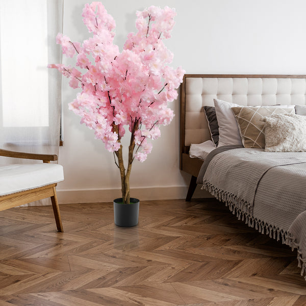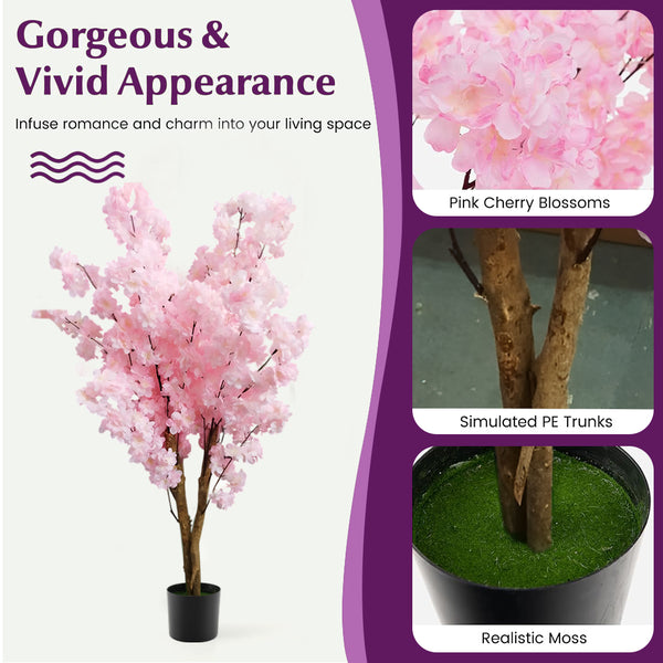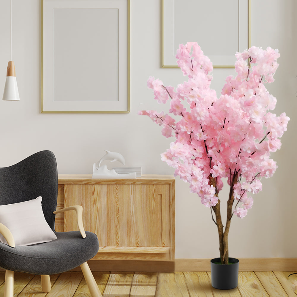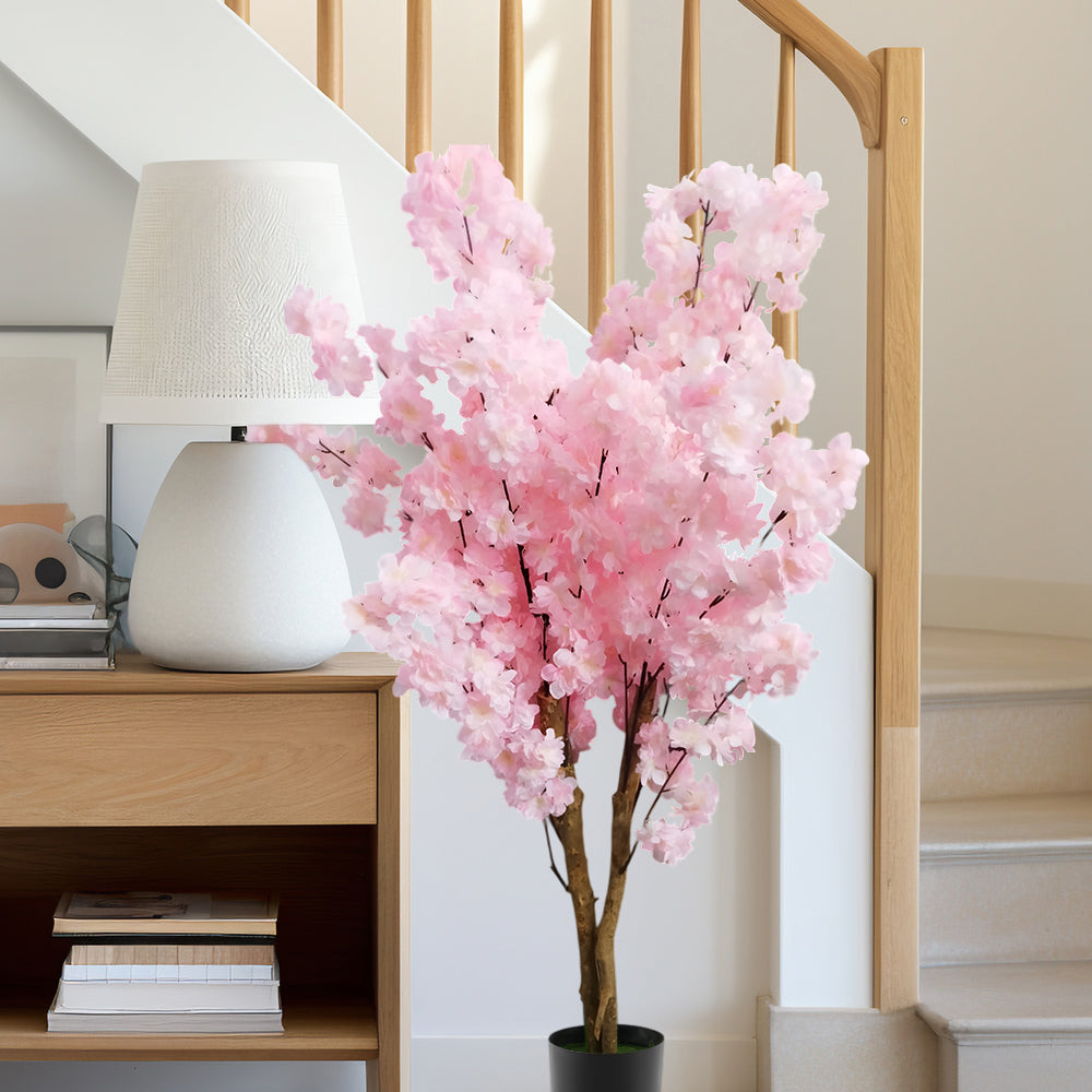 Elevate your home or office décor with this stunning 4.4 FT Artificial Cherry Blossom Tree. Crafted with meticulous attention to detail, this handmade decorative tree features natural silk flowers and real-touch leaves for an incredibly realistic look and feel. The elegant light pink blossoms and tall, slender design make it a perfect statement piece for any space, from living rooms to office lobbies. Whether used as a centerpiece or a corner accent, this artificial tree adds a touch of nature-inspired beauty without the hassle of maintenance.