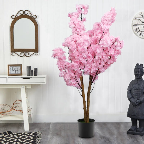 Elevate your home or office décor with this stunning 4.4 FT Artificial Cherry Blossom Tree. Crafted with meticulous attention to detail, this handmade decorative tree features natural silk flowers and real-touch leaves for an incredibly realistic look and feel. The elegant light pink blossoms and tall, slender design make it a perfect statement piece for any space, from living rooms to office lobbies. Whether used as a centerpiece or a corner accent, this artificial tree adds a touch of nature-inspired beauty without the hassle of maintenance.
