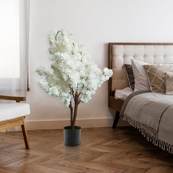Elevate your home or office décor with this stunning 4 FT Artificial Cherry Blossom Tree. Crafted with meticulous attention to detail, this handmade decorative tree features natural silk flowers and real-touch leaves for an incredibly realistic look and feel. The elegant white blossoms and tall, slender design make it a perfect statement piece for any space, from living rooms to office lobbies. Whether used as a centerpiece or a corner accent, this artificial tree adds a touch of nature-inspired beauty without the hassle of maintenance.