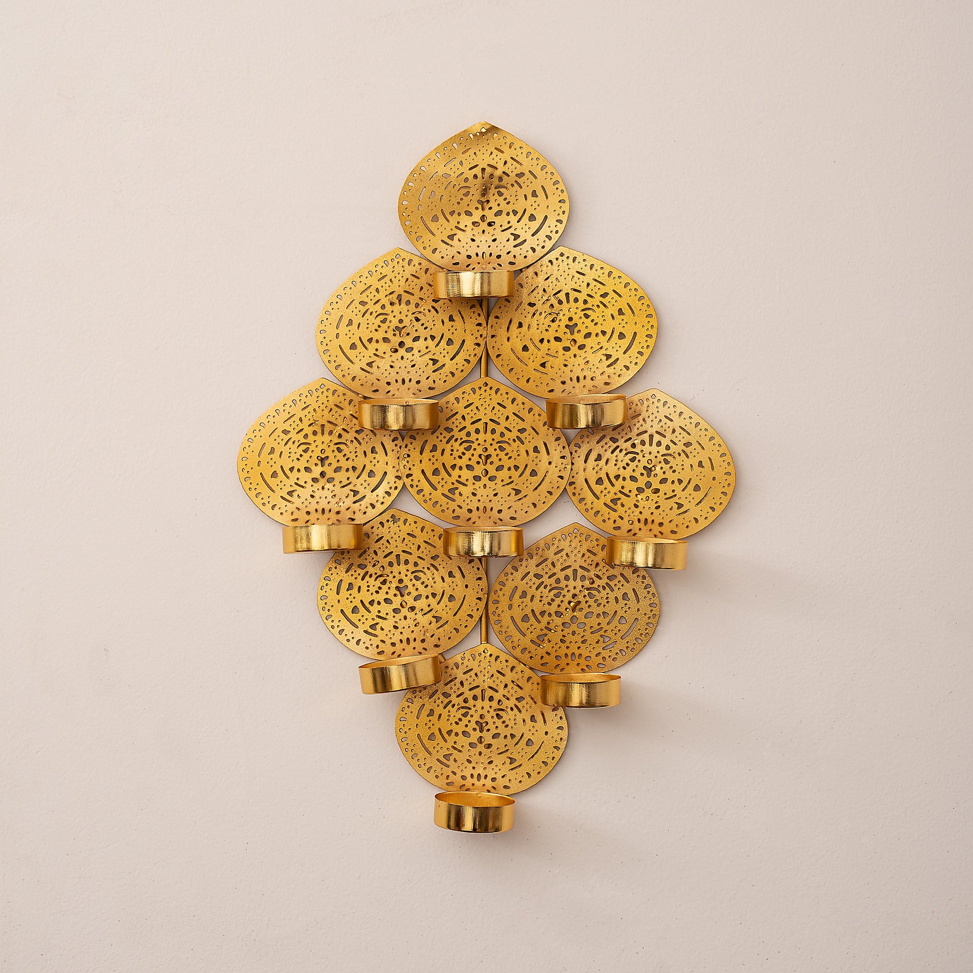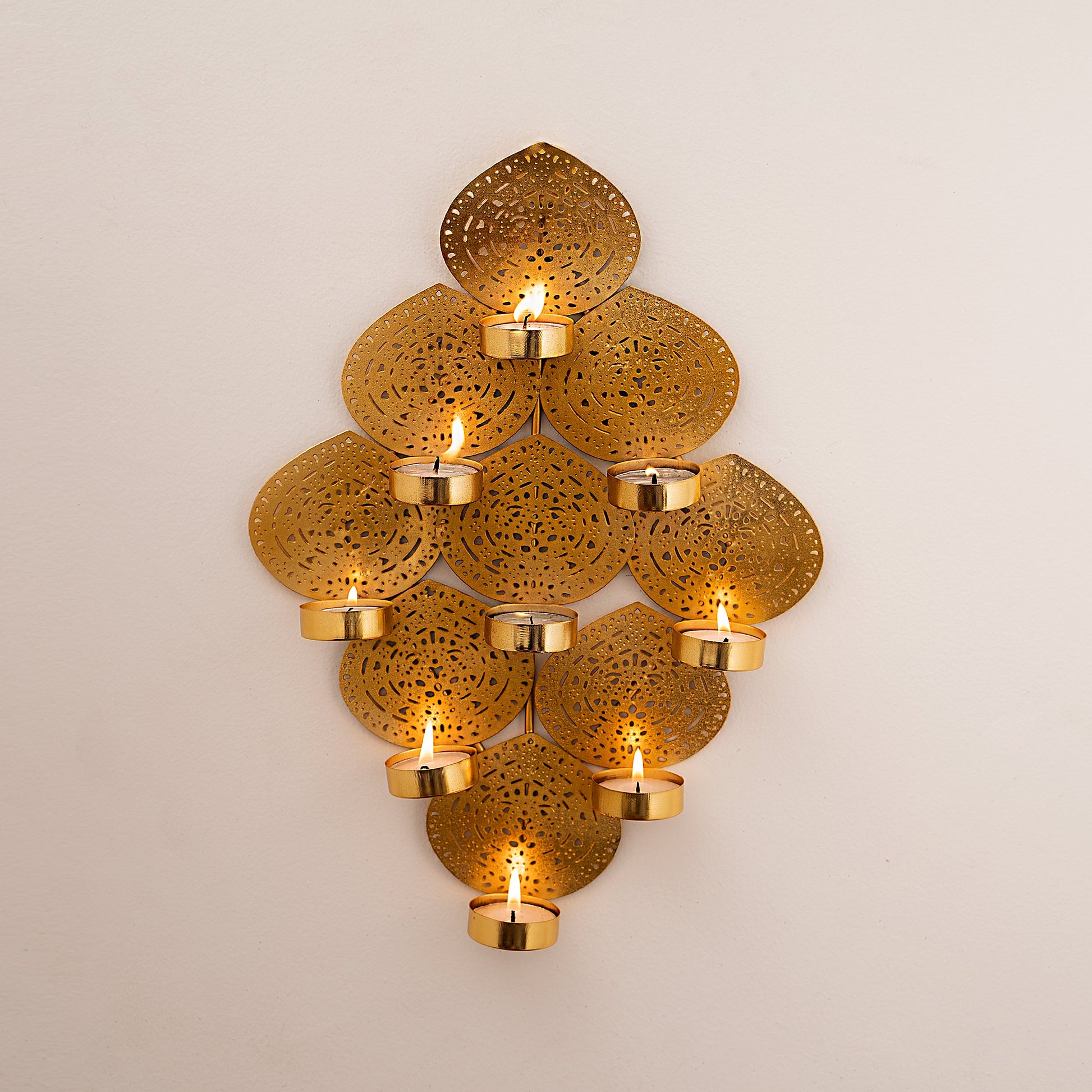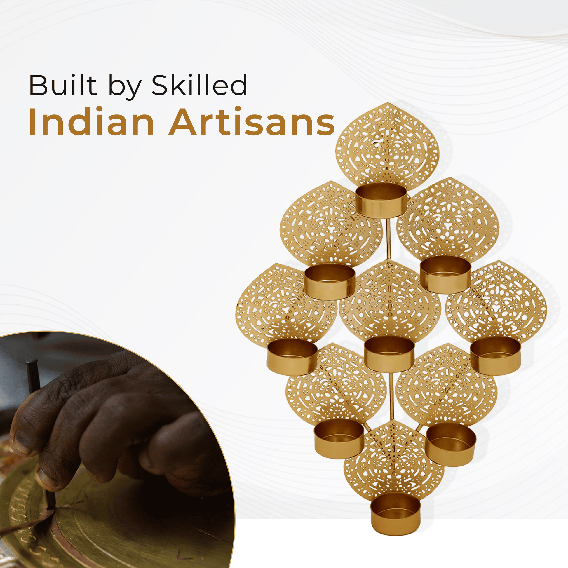 Take your home decor to the next level. The 9 Leaf Tea Light Holder Wall Hanging turns any empty wall into an artistic masterpiece with our brand new iron tea light holder. Add this beautiful hanging to your home or those of your loved ones today