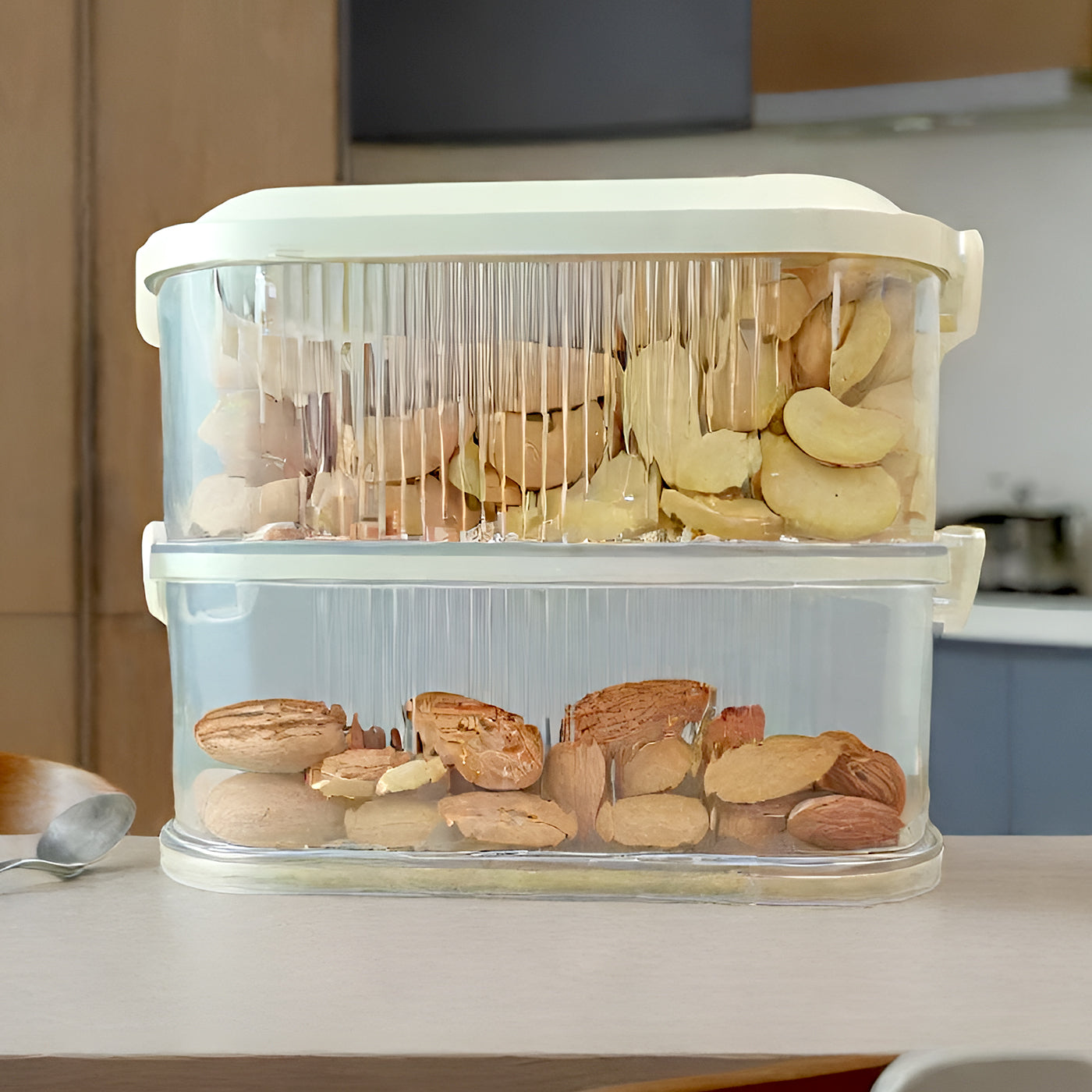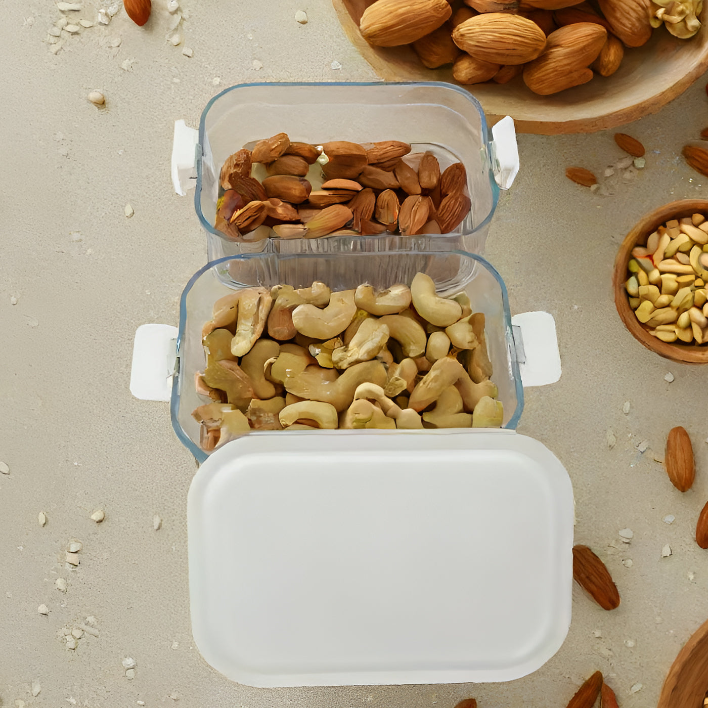 - 2-Layer Stackable Design: multi-layer structure allows you to store different spices, snacks, or condiments in a single container. This design saves space, keeps your kitchen neatly organized, and eliminates the need for multiple jars.