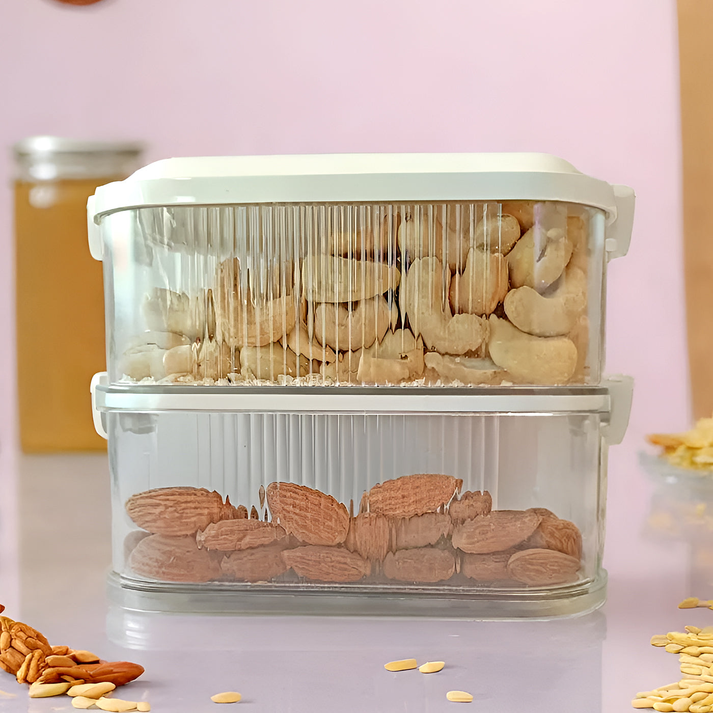 DecorTwist 2-Layer Spice Jars offer a versatile and airtight storage solution for your kitchen essentials. Designed with a multi-layer, leak-proof design, these containers keep your spices, snacks, fruits, grains, and seasonings fresh and organized. Made from food-grade materials, they ensure safety and durability, while the compact design is perfect for saving space in your pantry. Ideal for home cooking or on-the-go use, these jars combine convenience and functionality in one stylish package.