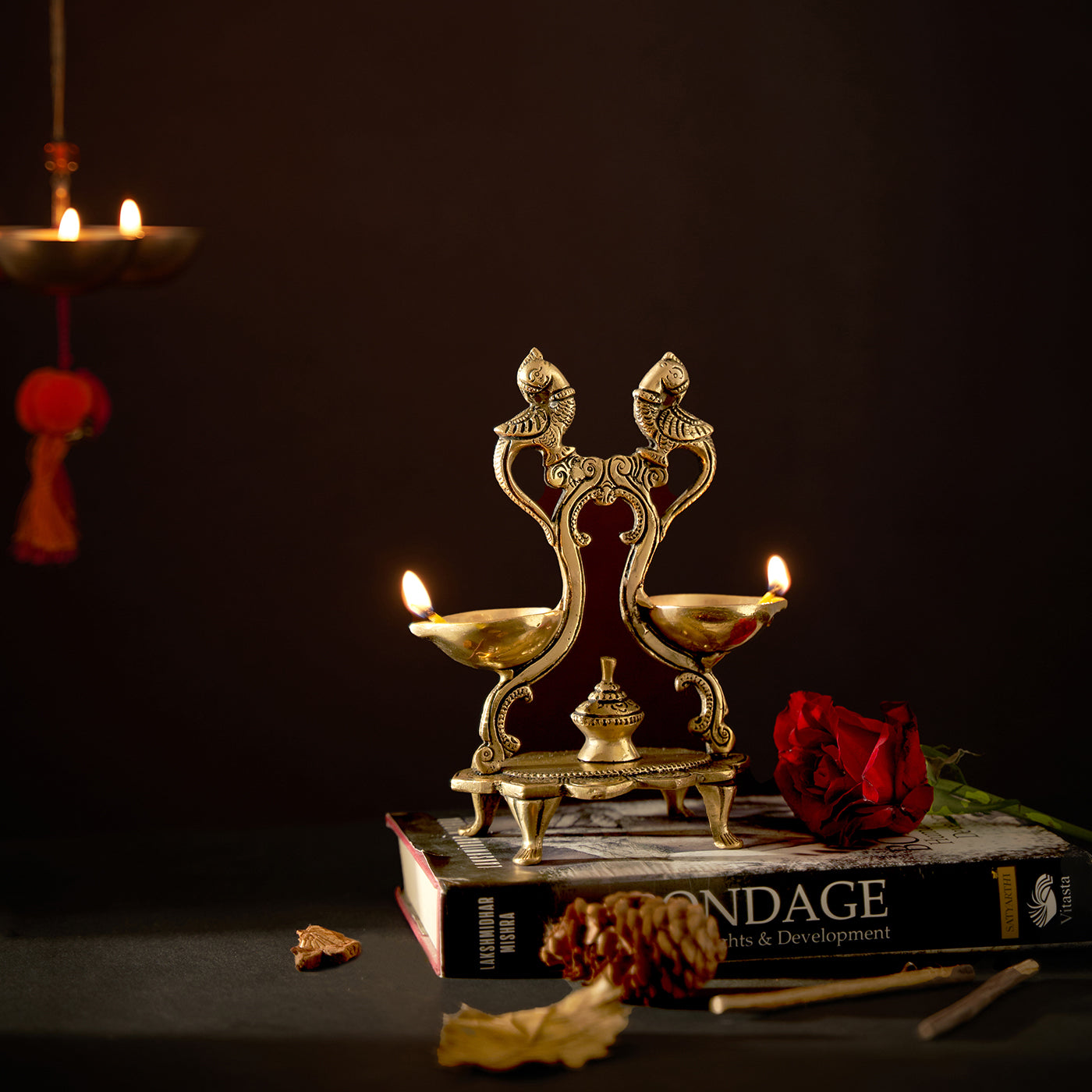 A timeless classic, this Peacock Design Twin Oil Wick Brass Akhand Diya is a bestseller from our Diya collection. Apart from conventional use as a diva, it also works great as a gorgeous gift that works both as home decor and a spiritual item.