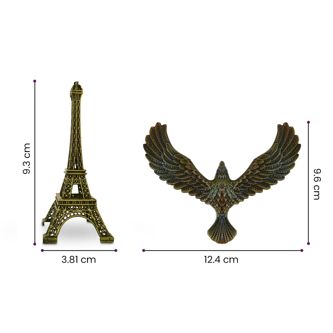 DecorTwist Balance Bird Eiffel Tower is a unique self-balancing decoration featuring a golden alloy eagle that gracefully balances on the tip of an Eiffel Tower stand. This antique-style piece uses gravity to create a mesmerizing effect, making it a great addition to any home, office, or tabletop setting. With its vintage-inspired design and elegant gold finish, it adds a touch of sophistication and charm to any decor while captivating guests with its intriguing balance and design.