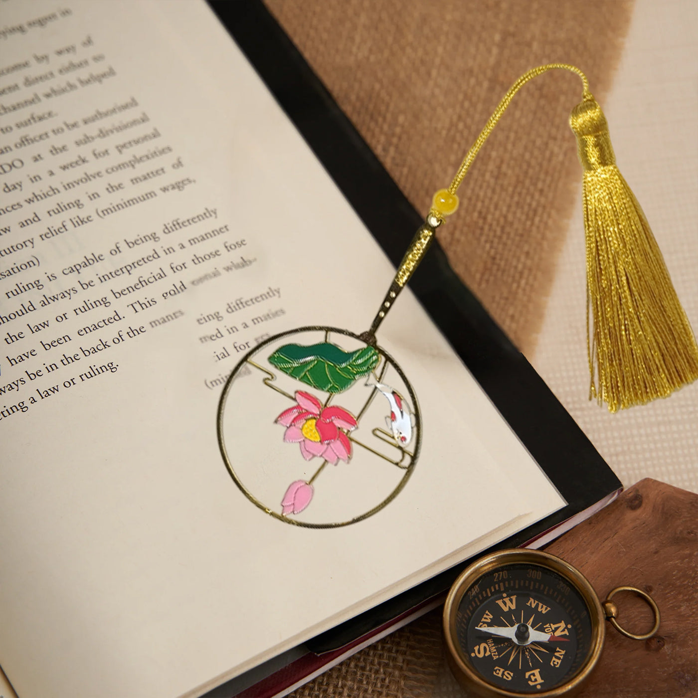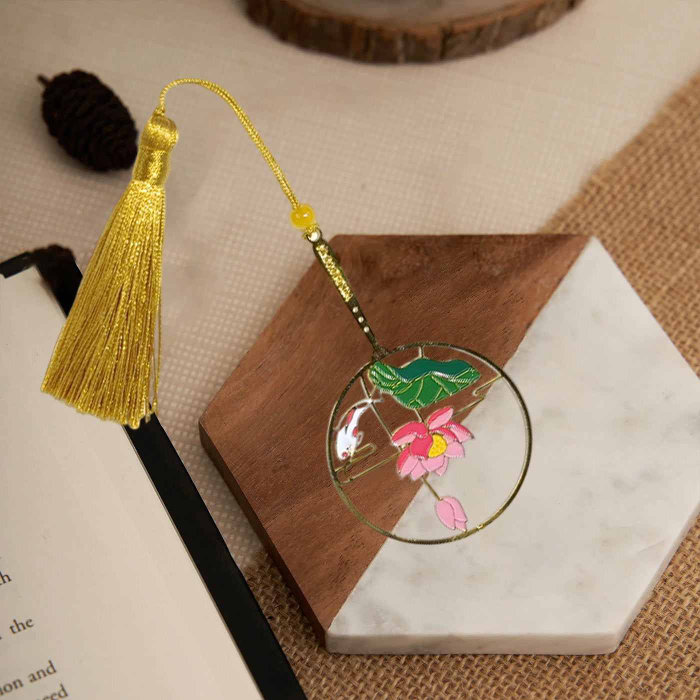Brass Bookmarks Handcrafted Lotus Design Multicolor Bookmark with Tassel Gift for Teachers, Readers , Book Lovers, Student