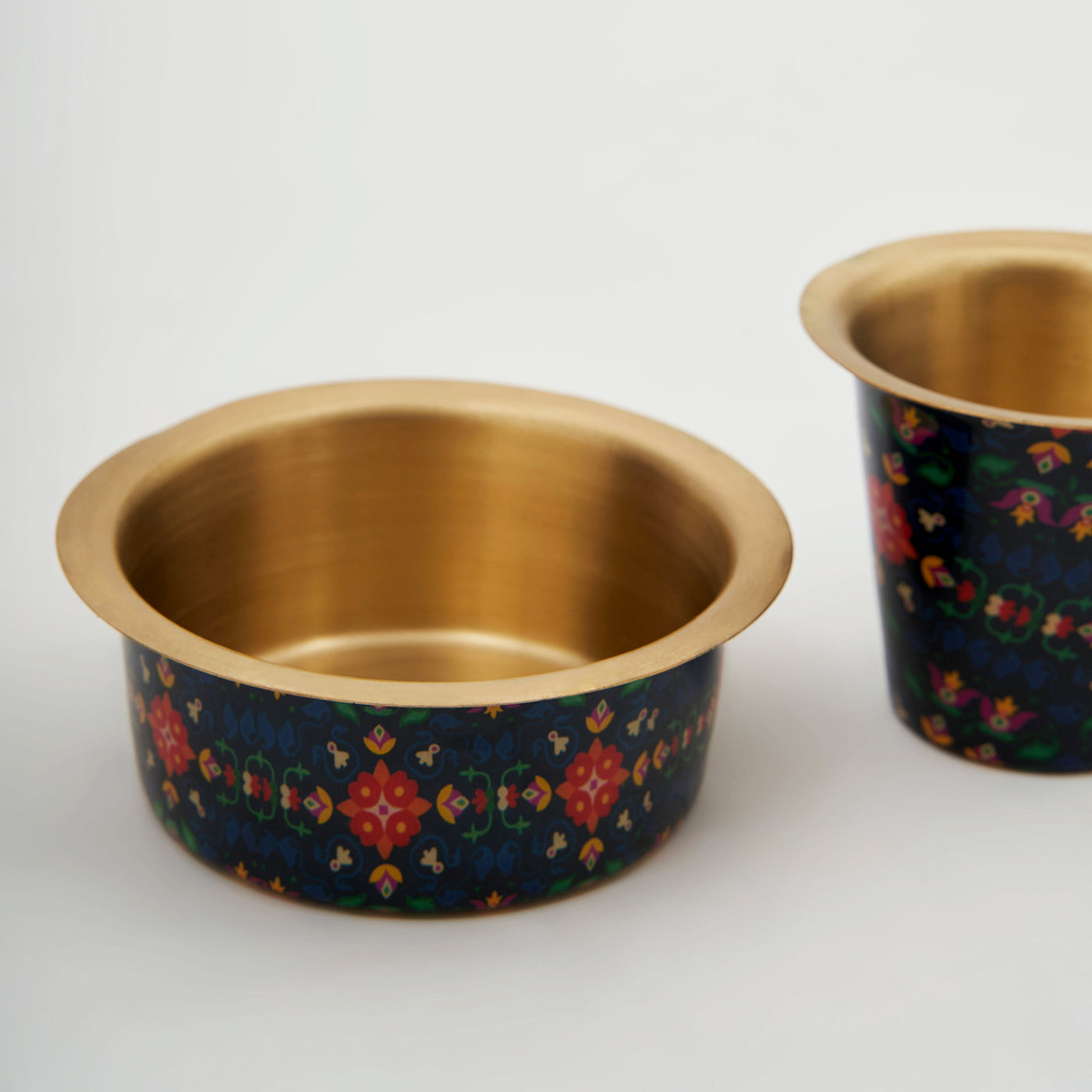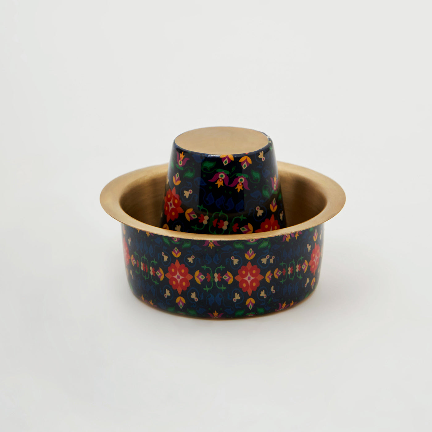 Pure Brass Dabara Set Tea Coffee Kumbakonam Dabara Set South Indian Coffee Glass Tumbler Set Serving Drinkware Brass Dabara Tumbler Set-150 ml ( Printed Pattern Blue)