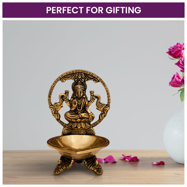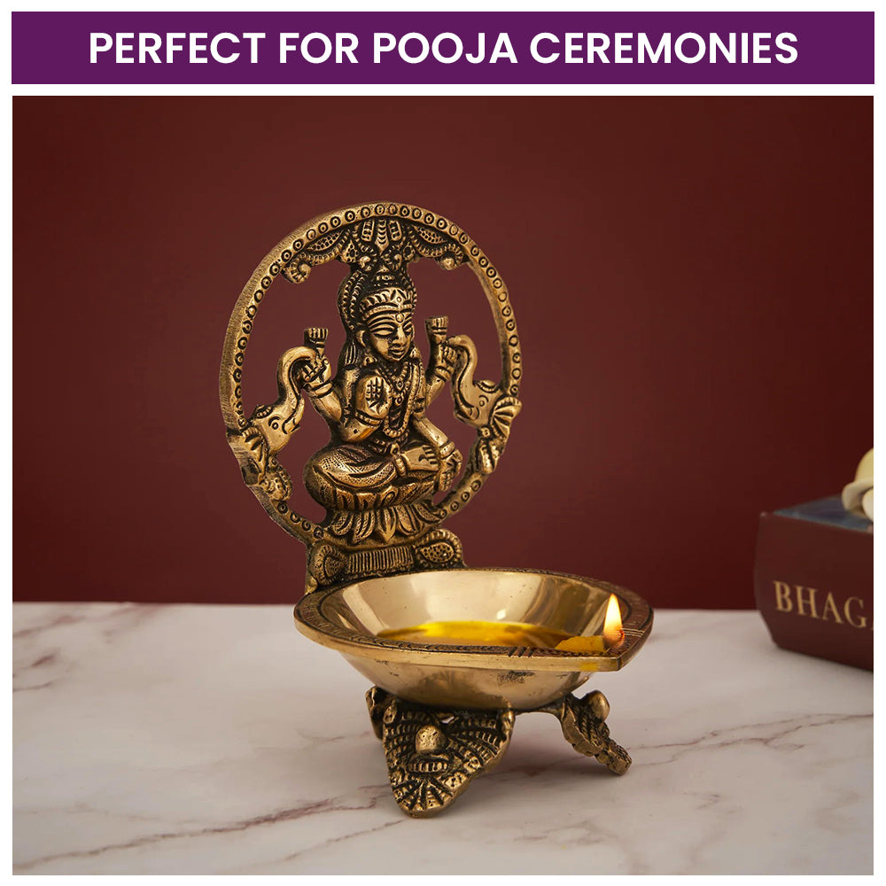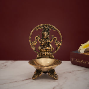 Brass Decorative Goddess Laxmi Diya With Stand is a magnificent piece that combines traditional craftsmanship with spiritual significance. Made from high-quality brass, this diya features a beautifully detailed depiction of Goddess Laxmi, the goddess of wealth and prosperity. The diya is designed with an elegant stand, ensuring stability and ease of placement in any setting. Its warm glow creates a serene and auspicious ambiance, perfect for worship, festive occasions, or as a centerpiece in your home decor. This diya is not just a source of light but also a symbol of divine blessings and abundance.