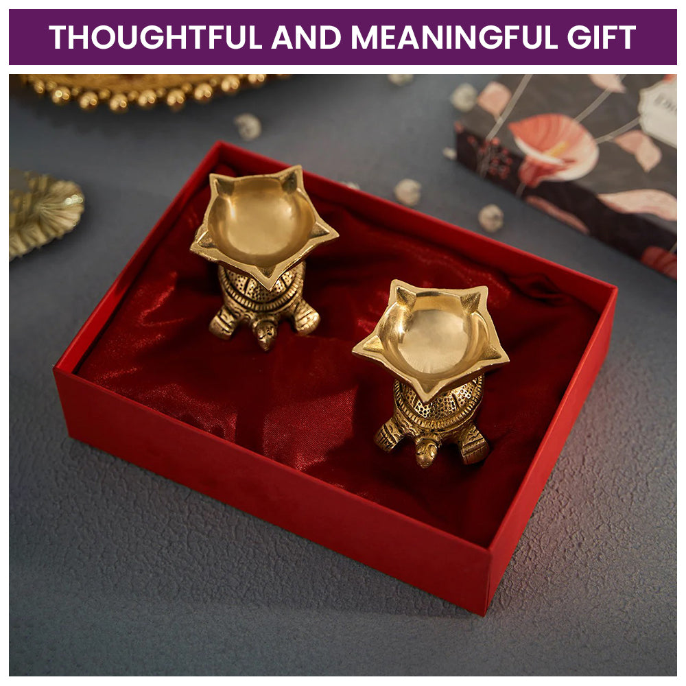 Brass Tortoise Panchmukhi Diya Set of 2