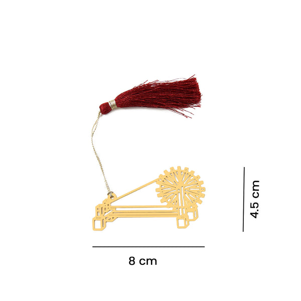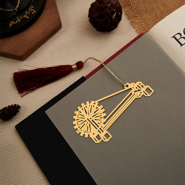 Brass Charkha Design Bookmark is a unique and elegant accessory, perfect for any book lover. Crafted from high-quality brass, this bookmark features a detailed charkha (spinning wheel) design, symbolizing Indian heritage and the spirit of self-reliance. Its slim and sturdy build ensures it keeps your place in your favorite book without damaging the pages. This beautiful bookmark not only adds a touch of cultural significance to your reading experience but also serves as a thoughtful gift for those who appreciate traditional craftsmanship.