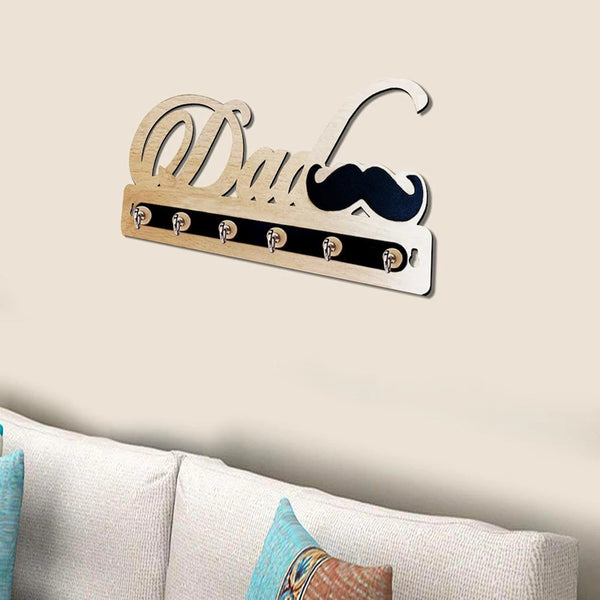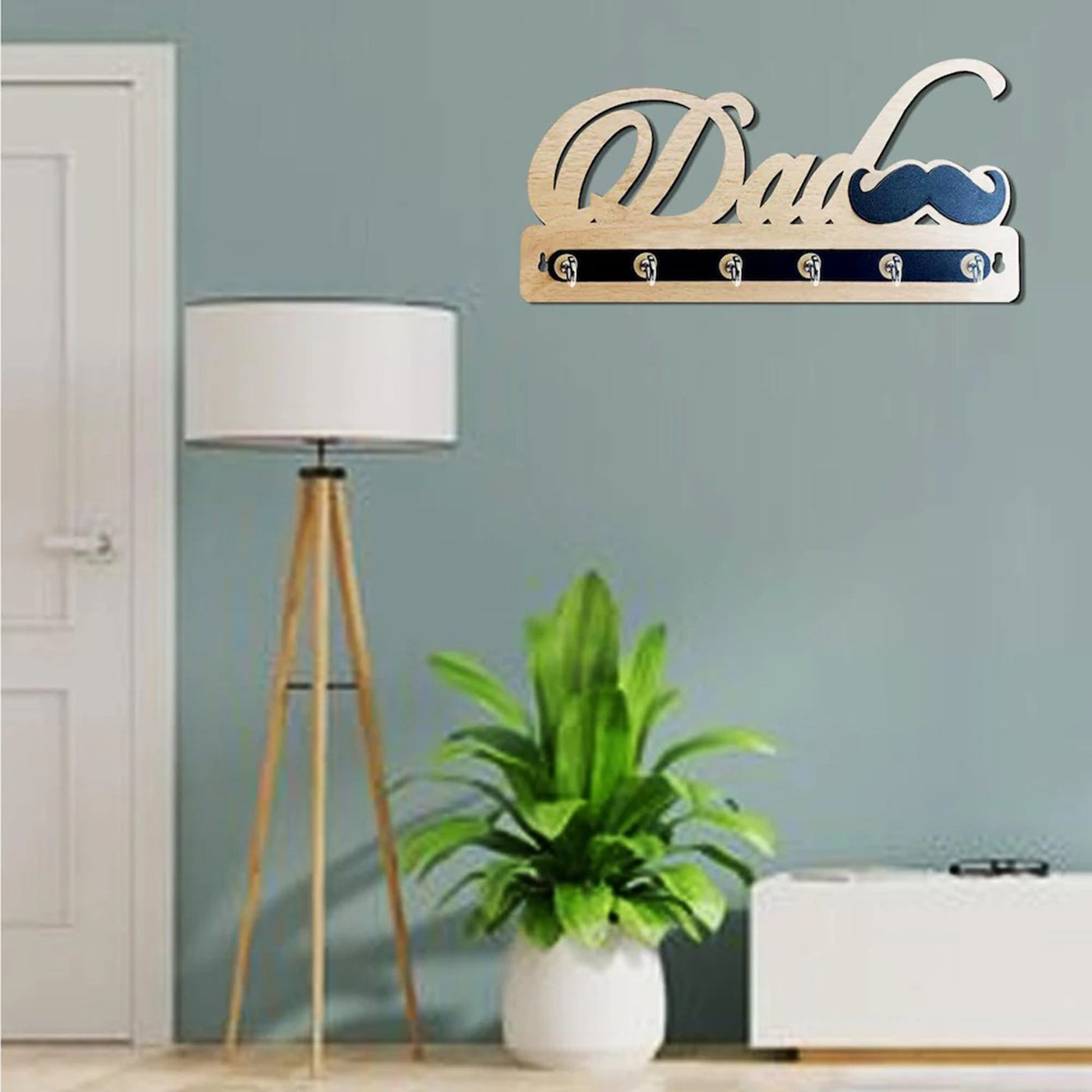 Dad Key holder | 6 Hooks Holder | Key Hanging Hooks for Home | Key Holder for Wall | Gift Items (Wooden)