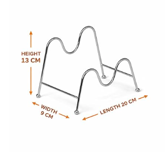 DecorTwist Stainless Steel Plate Holder Stand is a durable and space-saving kitchen organizer designed to keep your plates and cookware neatly arranged and easily accessible. Crafted from high-quality stainless steel with a rust-resistant chrome finish, it offers long-lasting strength and reliable performance for everyday kitchen use.