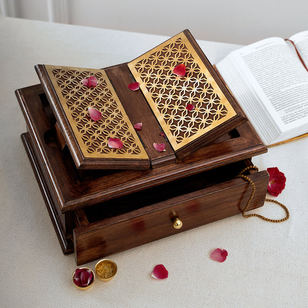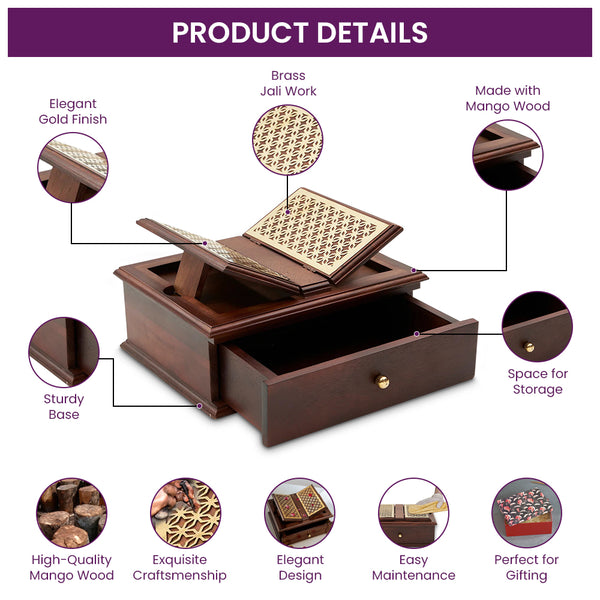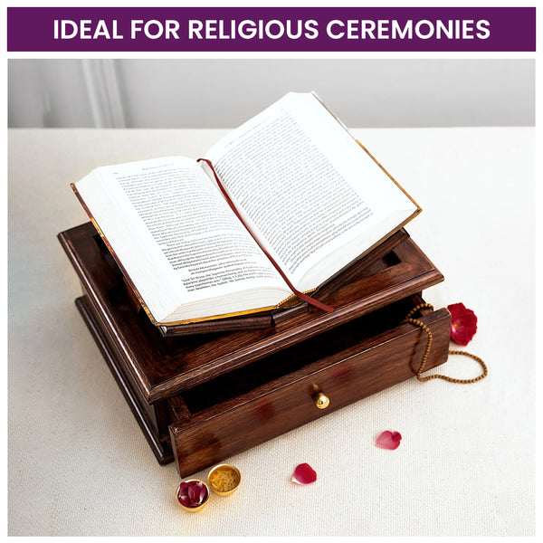 Handcrafted Holy Book Stand Box for Reading Geeta, Quran, Guru Granth Sahib, Bible Book Box
