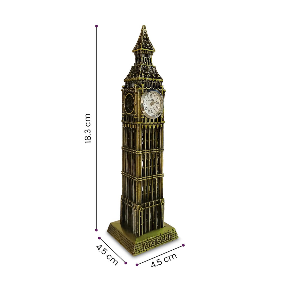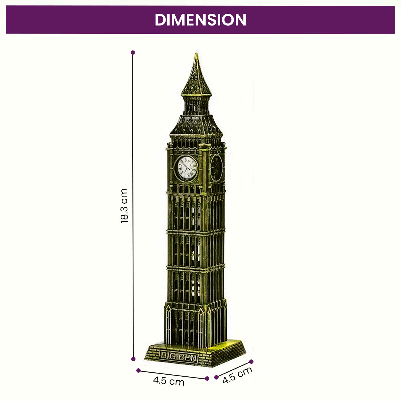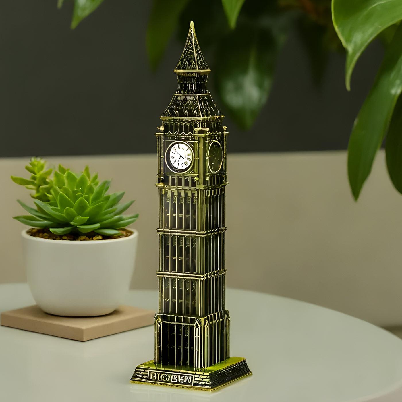 DecorTwist Metal Big Ben Clock Tower London Statue is a beautifully crafted metal miniature that brings an iconic London landmark into your space. Perfect for home decor, tabletop display, offices, or study rooms, this elegant figurine adds a touch of sophistication and charm. Its detailed design captures the essence of Big Ben, making it an ideal gift for any occasion. A great addition for anyone who loves travel, history, or the unique architecture of London.