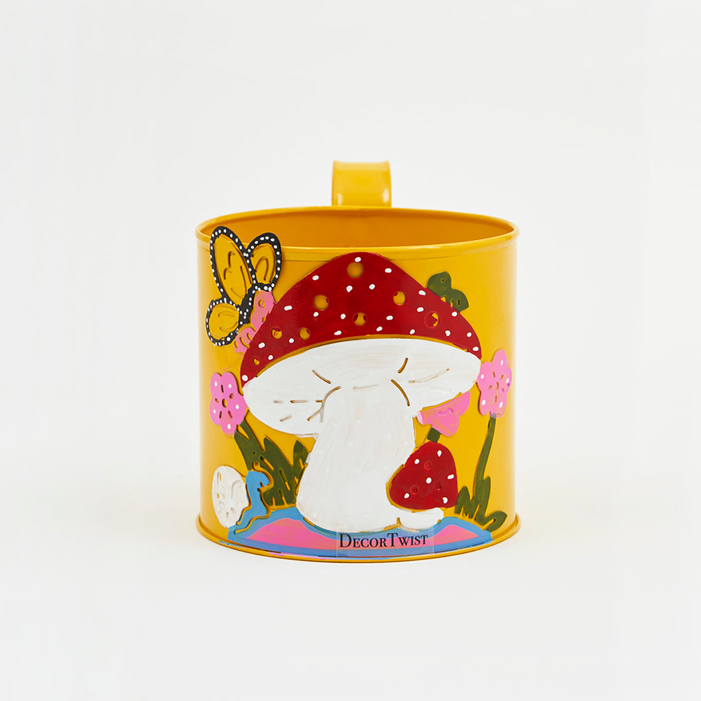 Mushroom Printed Metal Hanging Planter Flower Pot with Handle for Railing Balcony Indoor Outdoor Home Office Garden Decor-Yellow