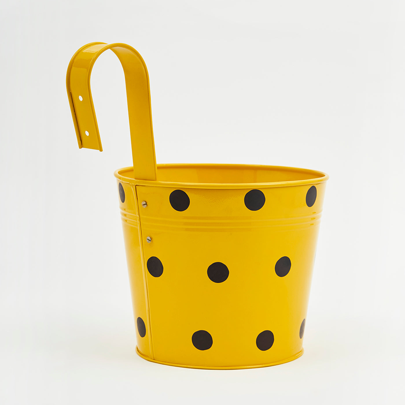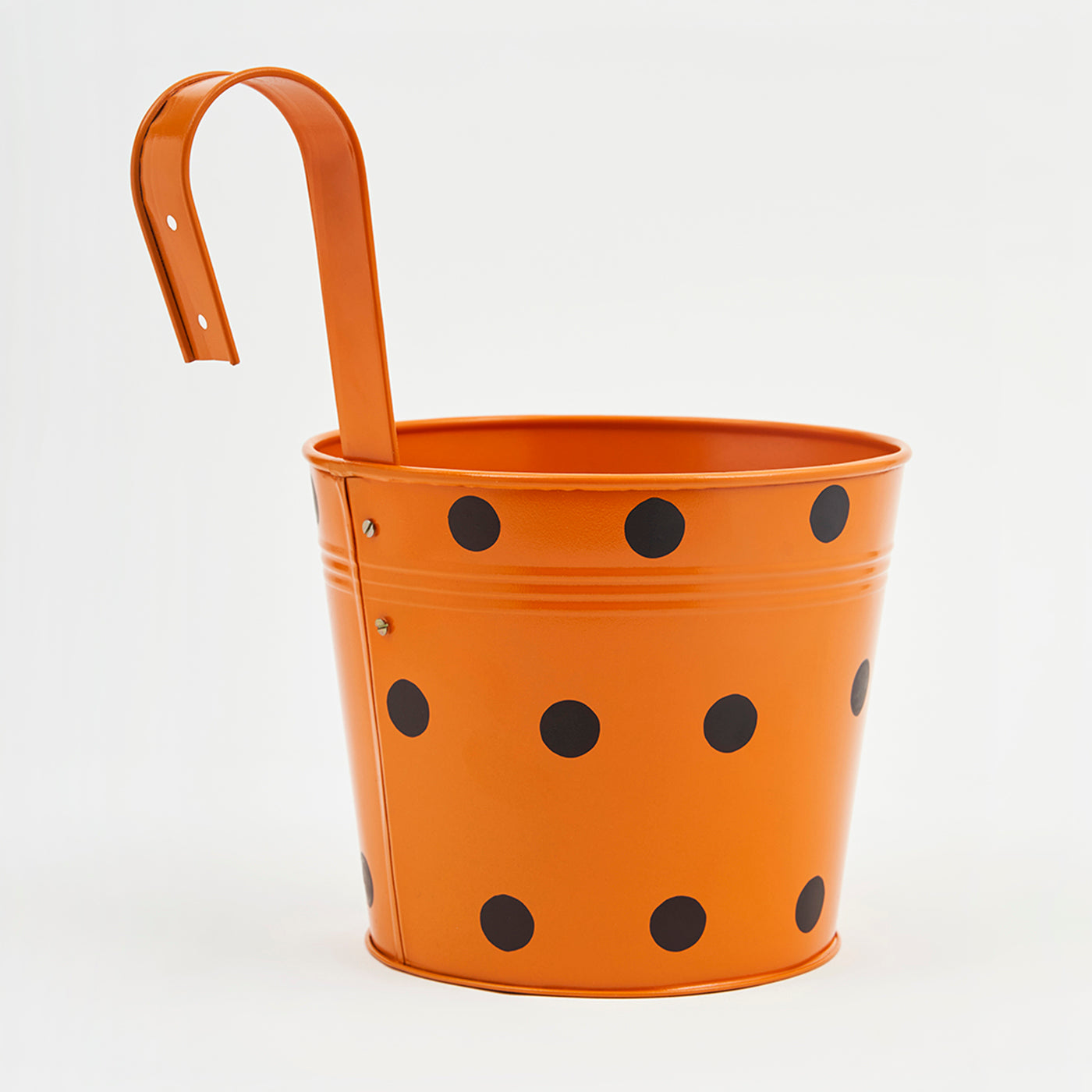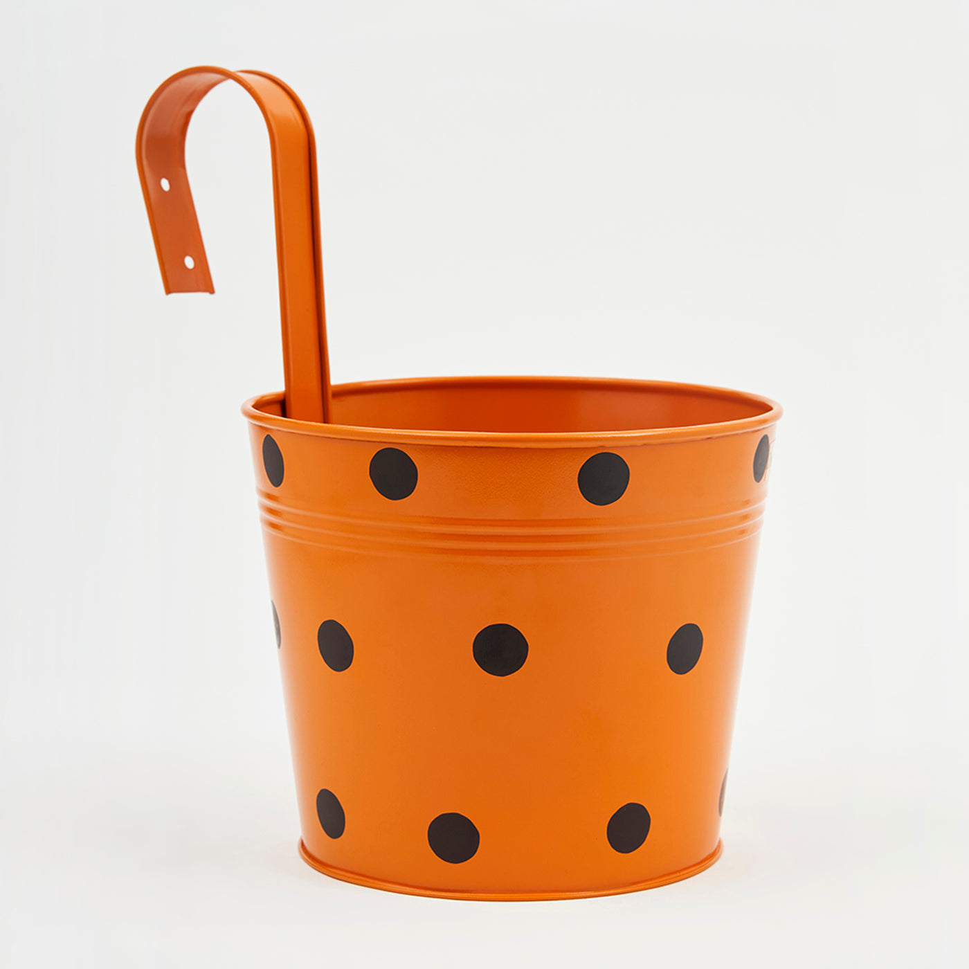 Metal Hanging Planter Dotted Railing Flower Pot. Featuring a charming dotted design, this planter is equipped with a sturdy handle, making it easy to hang on railings or place on flat surfaces. Perfect for balconies, gardens, or indoor settings, it offers a stylish and practical solution for showcasing your favorite plants. Suitable for both indoor and outdoor use, this versatile planter adds a touch of elegance to your home, office, or garden décor, creating a vibrant and inviting atmosphere.