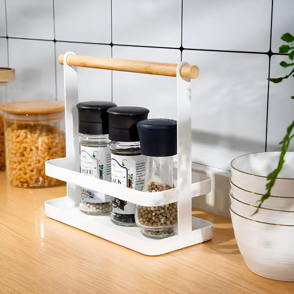 - Bamboo Handle for Easy Portability: The natural bamboo handle not only adds a modern, aesthetic appeal but also makes it easy to lift and move the organizer wherever you need it, whether from kitchen to dining table or countertop to storage.
