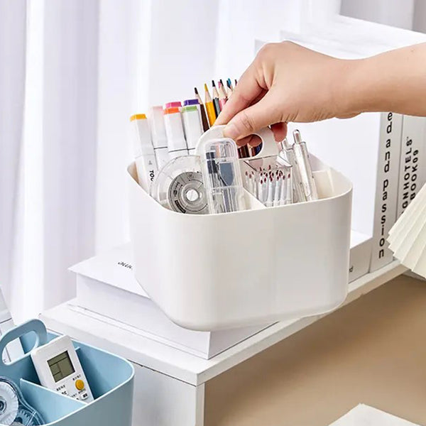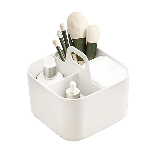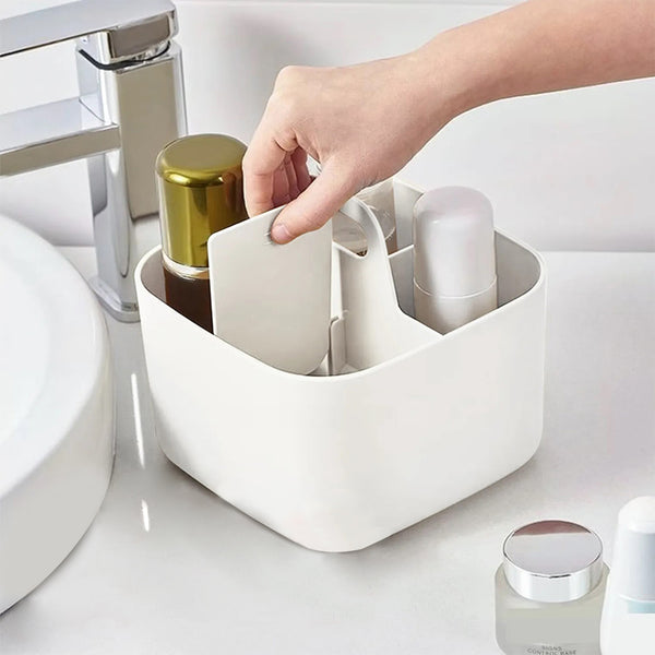 Multi-functional Plastic Desk and Bathroom Organizer 4 Compartments for Cosmetics, Pens, Pencils, and Toothpaste