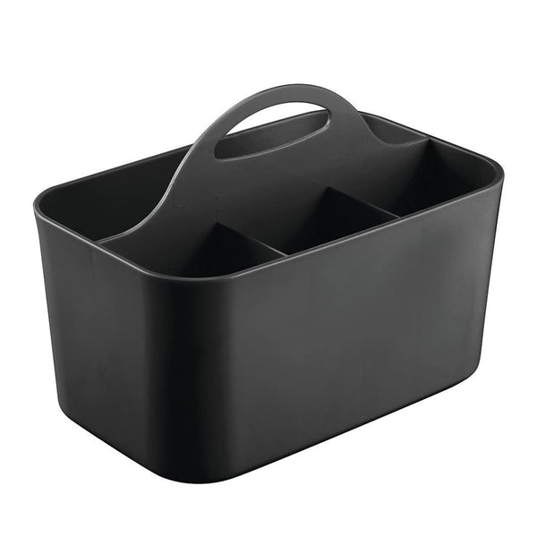 Multi-functional Plastic Desk and Bathroom Organizer 5 Compartments for Cosmetics, Pens, Pencils, and Toothpaste (Black)