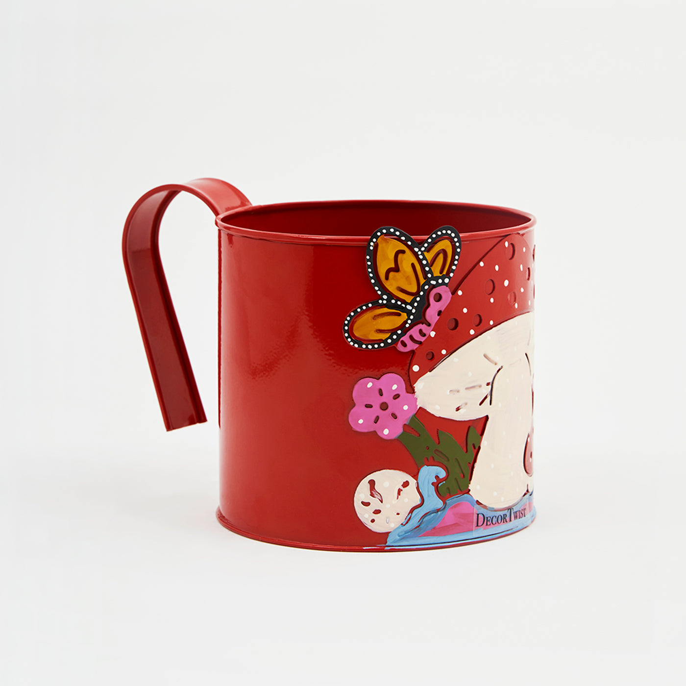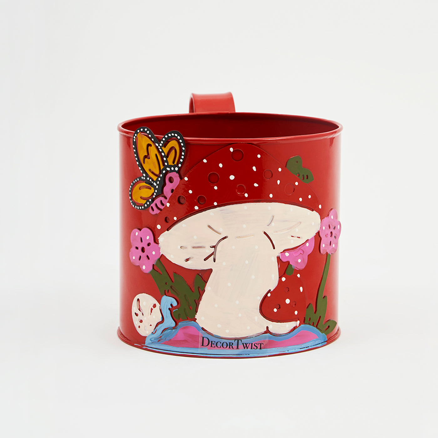 Mushroom Printed Metal Hanging Planter, a charming flower pot designed with a convenient handle for easy hanging on railings. Ideal for balconies, gardens, or indoor spaces, this planter combines durability with whimsical style. Perfect for both indoor and outdoor settings, it brings a playful touch to your home, office, or garden, making it a delightful addition to your décor.