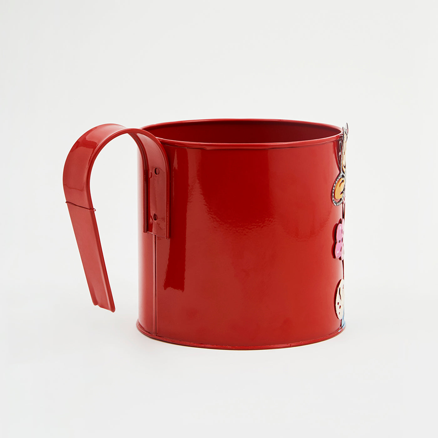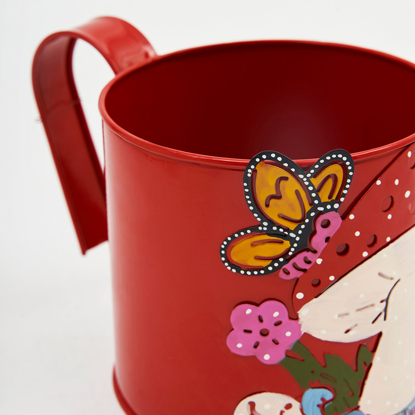 Mushroom Printed Metal Hanging Planter Flower Pot with Handle for Railing Balcony Indoor Outdoor Home Office Garden Decor-Red
