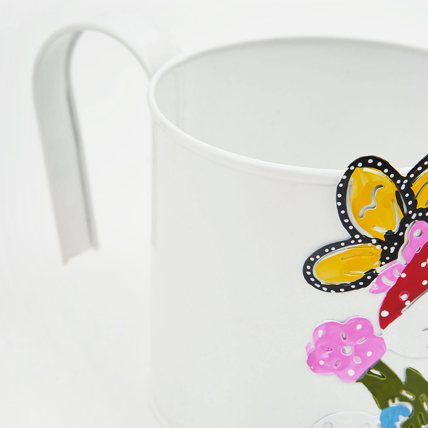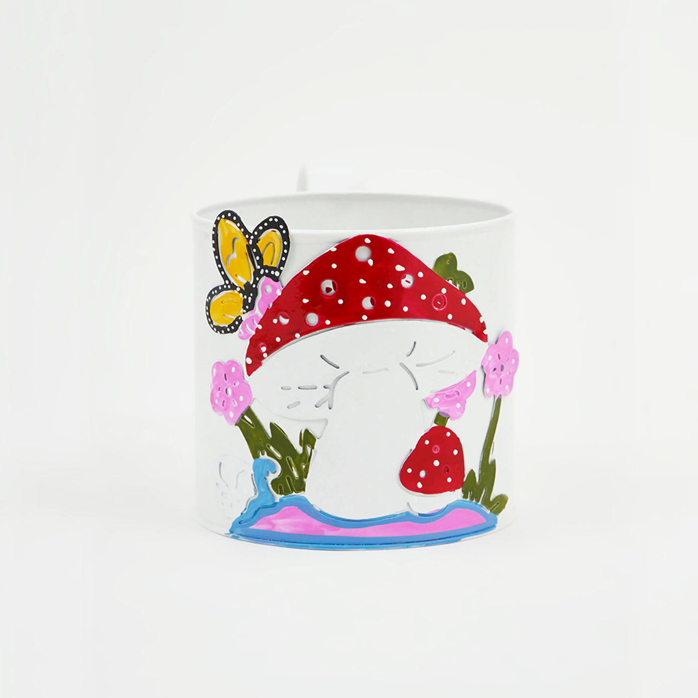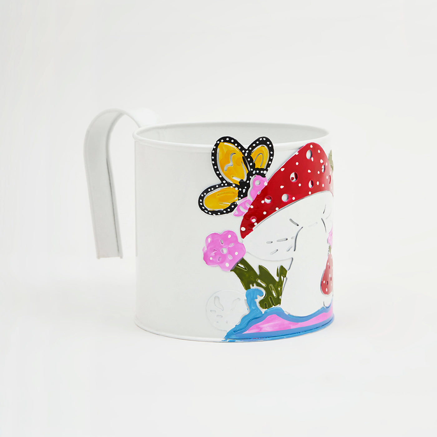 Mushroom Printed Metal Hanging Planter Flower Pot with Handle for Railing Balcony Indoor Outdoor Home Office Garden Decor-White