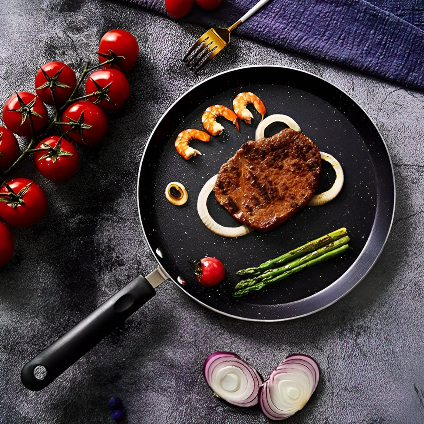 Durable & Scratch-Resistant Build – Made from high-quality aluminum, this pan offers enhanced durability, preventing warping and maintaining its premium look over time.