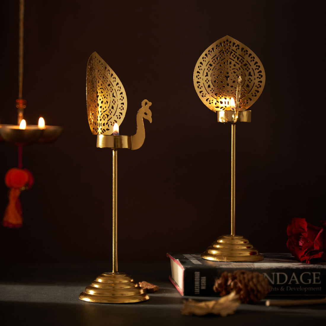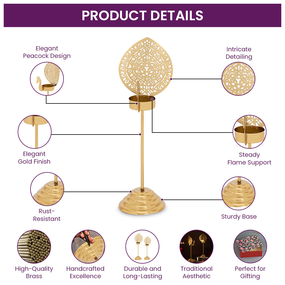 - Home Décor Accent: Tealight Candle Holder Stand features a stunning peacock design in golden metal, adding an air of sophistication to your living room, bedroom, or dining area. Its intricate detailing brings a touch of luxury, making it a statement piece that enhances the ambiance of any space. Whether for everyday décor or festive occasions, this candle holder effortlessly elevates the aesthetic of your home.