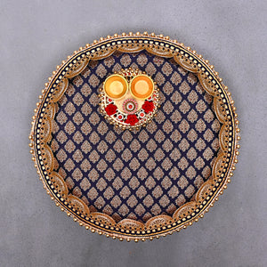 Stainless Steel Handcrafted Decorative Pooja Thali for Diwali Puja, Home, Temple, Mandir, Wedding, Bhai Dooj Decorative Puja Plate (Blue)