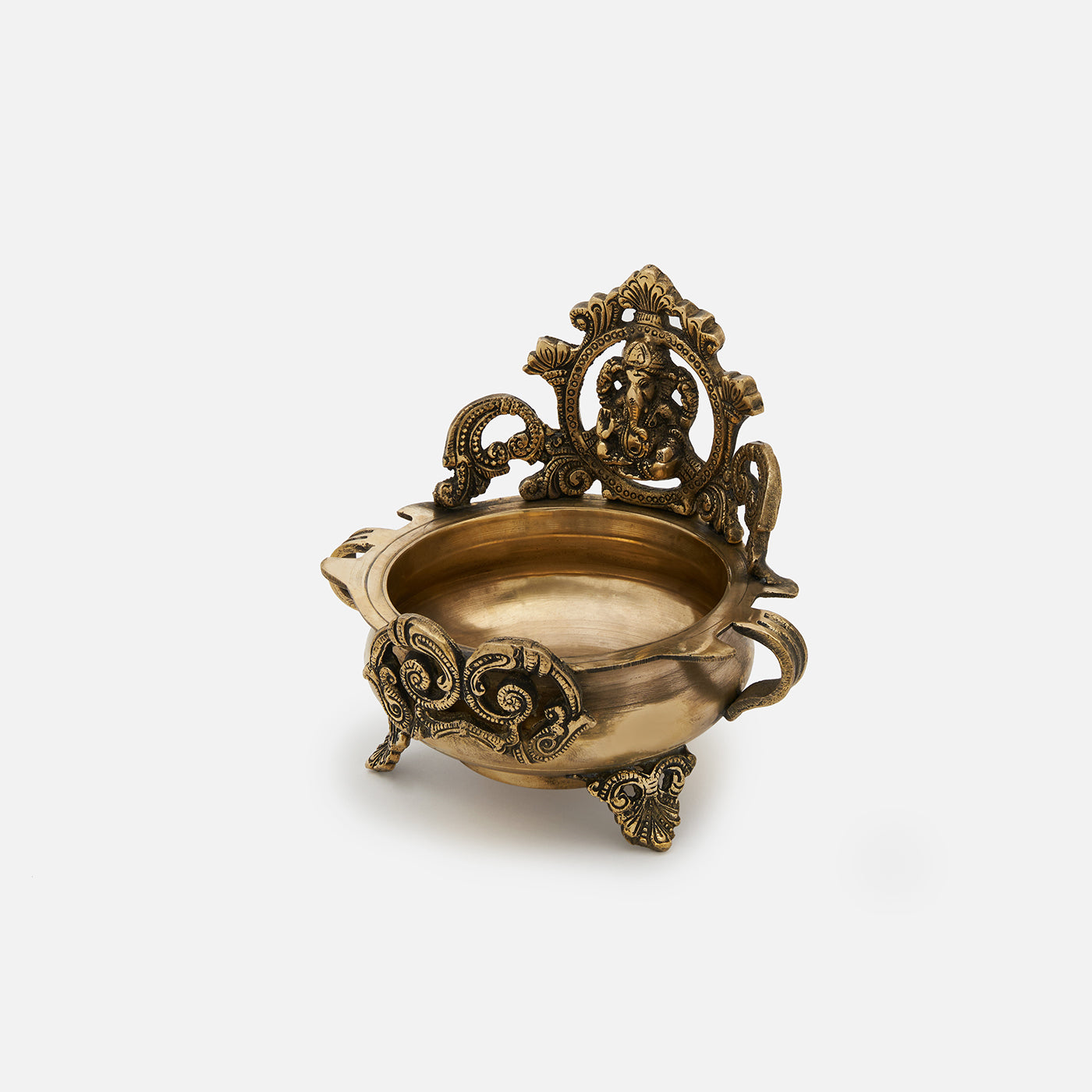 Introducing the Traditional Brass Ganesh Urli Bowl - a stunning and meticulously handcrafted piece that blends traditional and artistic creativity. Made from striking brass metal, this urli bowl is adorned with extraordinary designs that embrace the traditional Indian aesthetic.