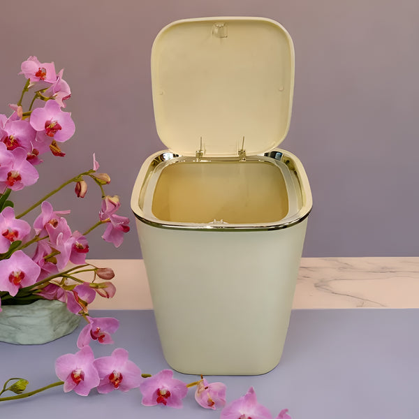 Trash Can Box | Waste Dustbin | Table Dustbin | Garbage Can Desktop Dust Bathroom Garbage Bin Plastic Dustbin (23.5 cm x 23.5 cm x 30) Off White